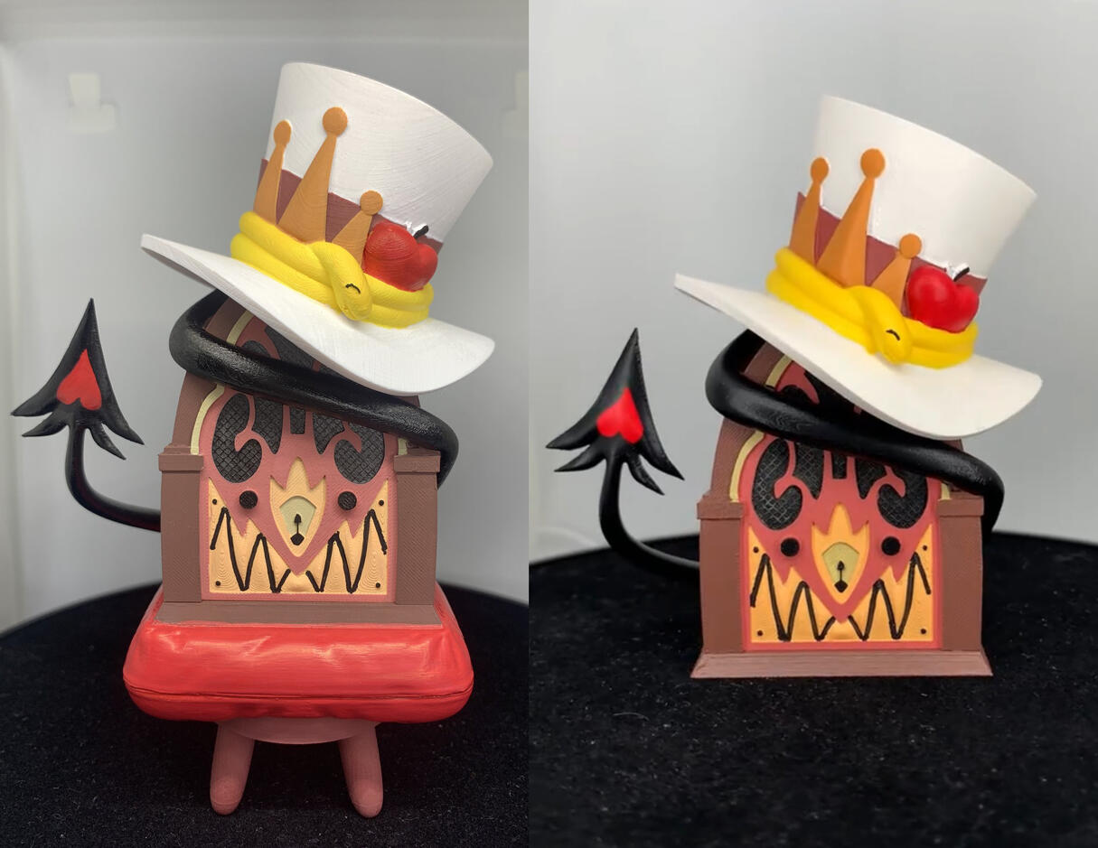 Hi! I'm Shinigami3D or simply Shin and make 3D printed figurines of Lucifer and Alastor from Hazbin Hotel.I'm making 3D models by myself in program Blender and I use commisisioned references by various artists or me.